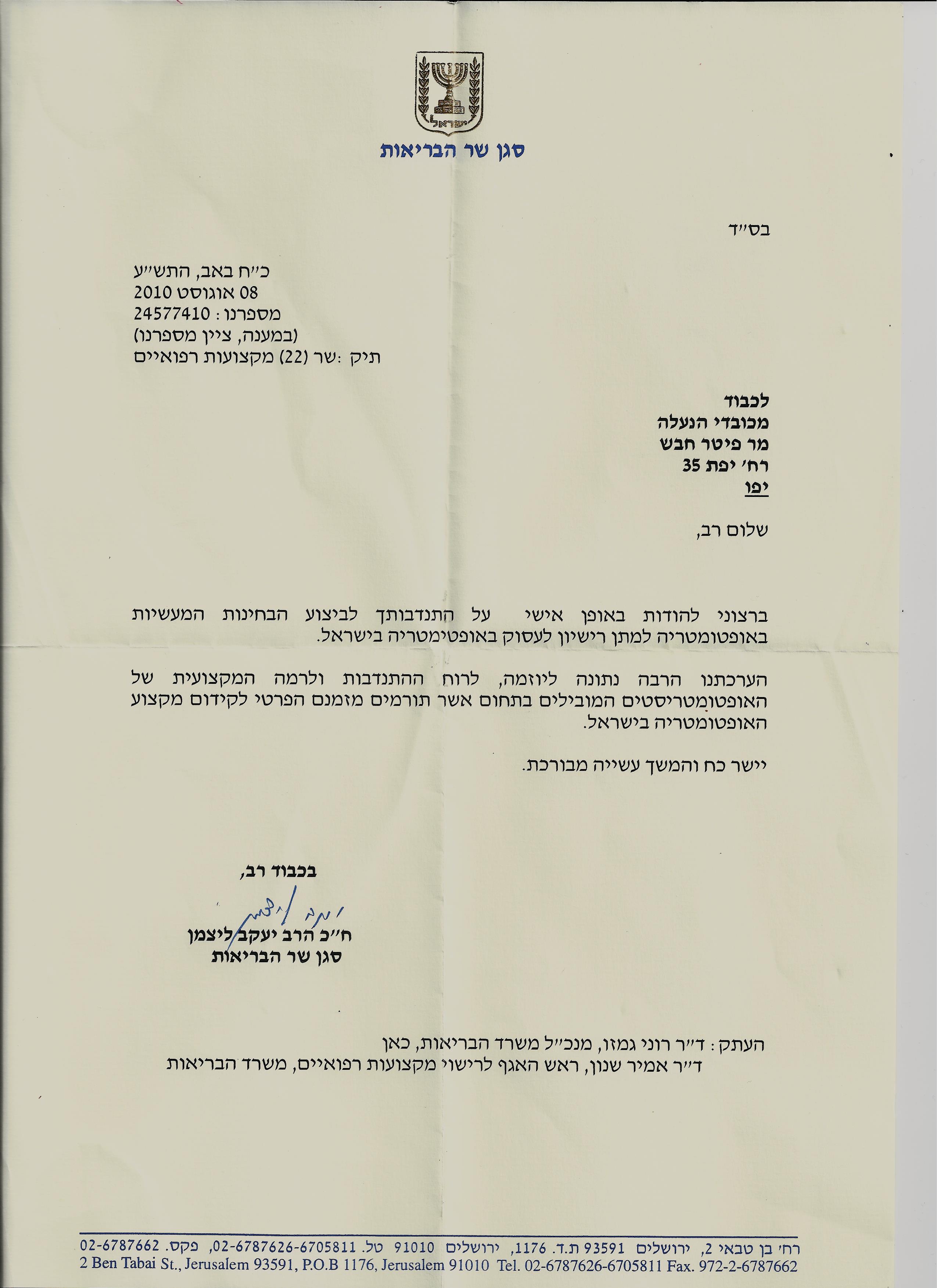 הוא בדק אותי והתאים לי משקפיים כשם שאיש לא עשה לפניו עם הרבה סבלנות,דיוק ומיומנות במיטב המיכשורהמשוכלל הקיים כיום .